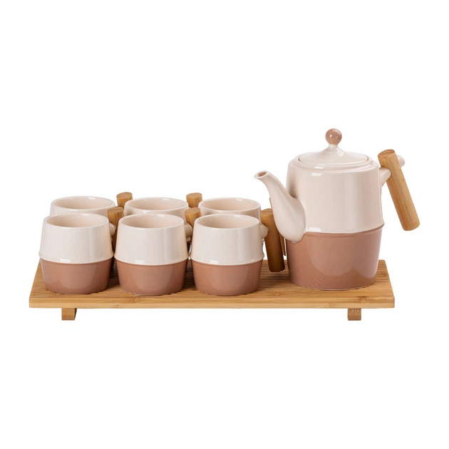 Чайний сервіз на 6 персон з бамбуковою підставкою коричневий