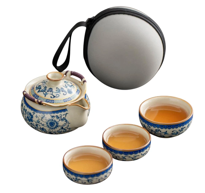 Дорожній набір для чайної церемонії, 4 предмета, фарфоровий