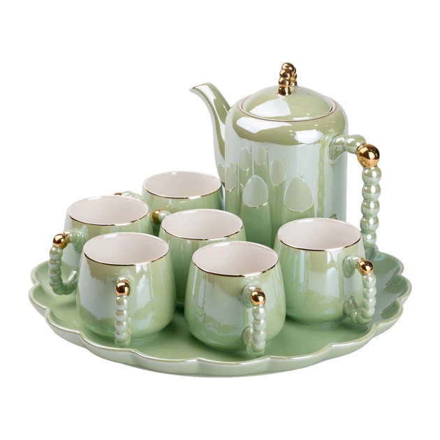 Чайний набір на 6 персон із заварювальним чайником та керамічною підставкою Зелений HP-15-8