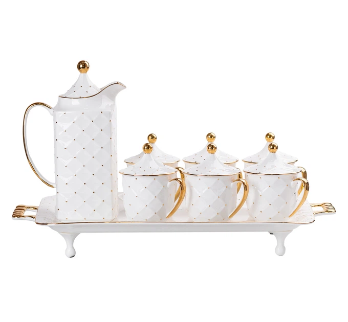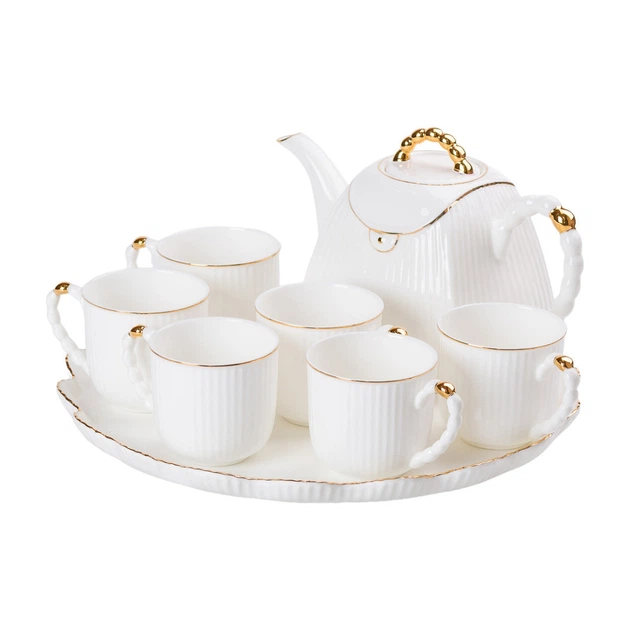 Чайний набір на 6 персон, із заварювальним чайником, білий. (LG-2350684542)