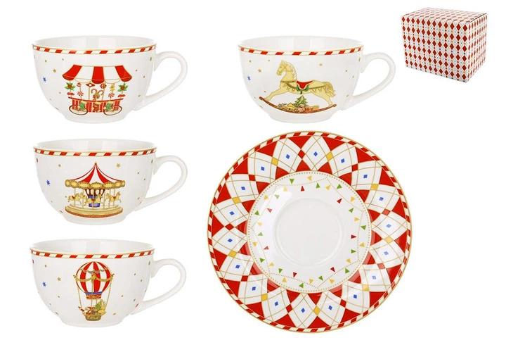Набір (4 шт) порцеляновий Зимова Казка: чашка 250мл з блюдцем