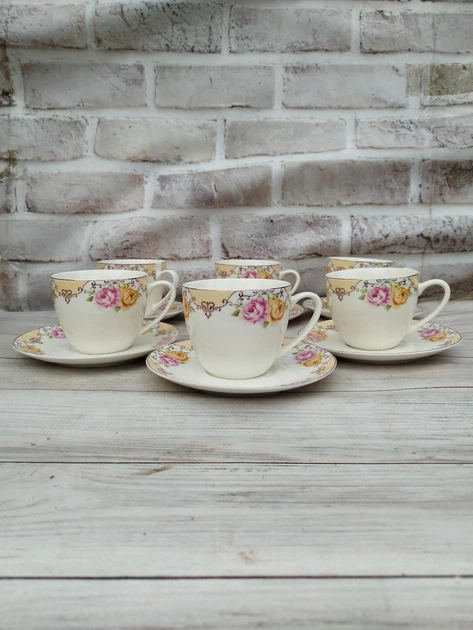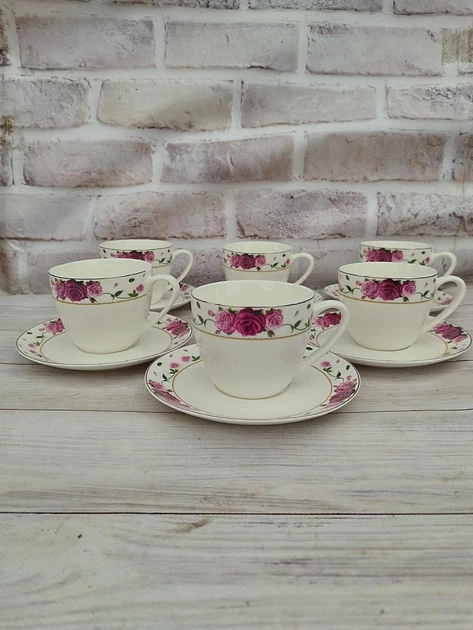 Чайний сервіз SNT Квітковий орнамент порцеляна 250 мл 12 предметів Білий 15103
