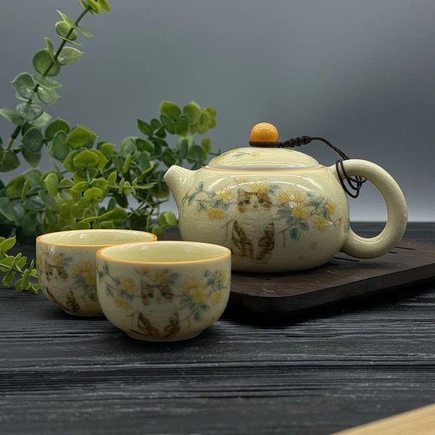 Чайний набір на двох із чайником СіШі Світлий чайний набір Кошеня