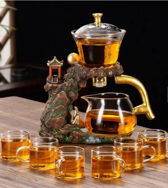 Сервіз лінивий будиночок у горах із чашками, скляний чайний сервіз із магнітом, магнітний заварник для чаю