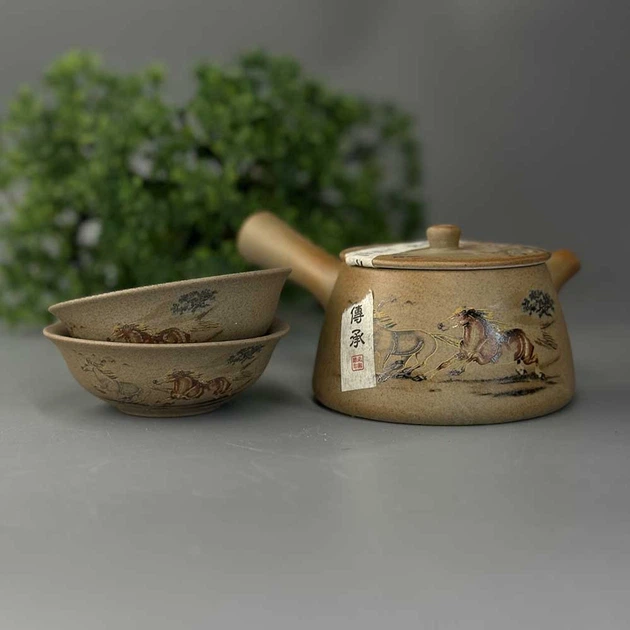 Чайний набір з іссинської світлої глини чайник + 2 піали «Мустанг»