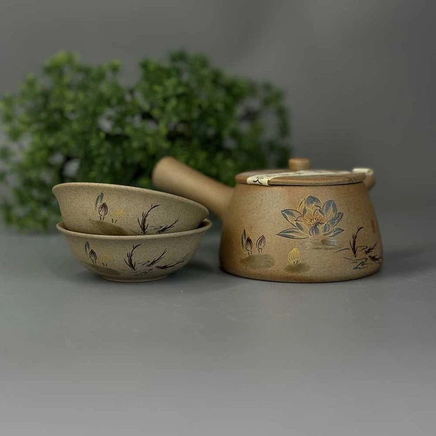 Чайний набір з іссинської світлої глини чайник + 2 піали «Лотос»
