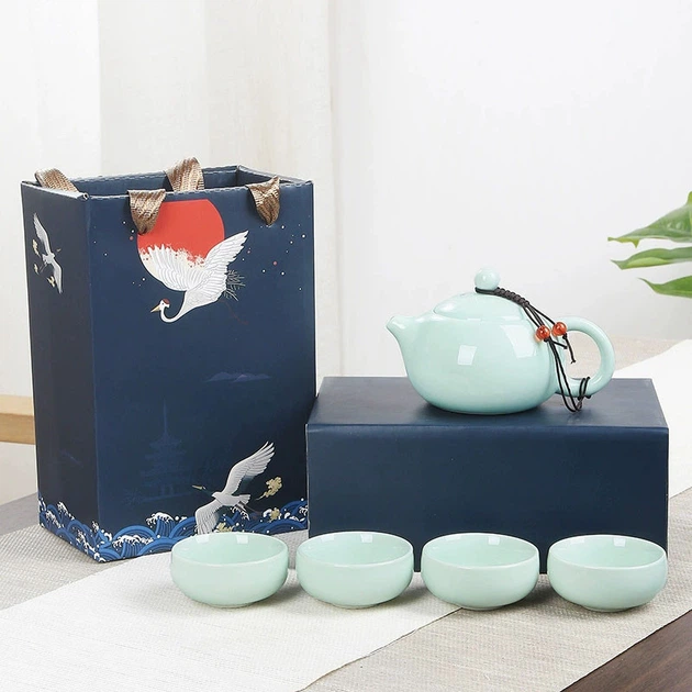 Керамічний чайний сервіз у подарунковому пакованні, набір для чайерної церемонії на 4 персони