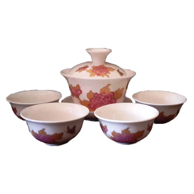 Чайний сервіз No Brand Півонія та метелик 7 предметів Різнокольоровий (DN28472)