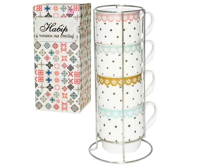 Набір чайний SNT Ніжність 021-04-0 на стійці 5 предметів 4х320 мл Різнобарвний (987536)