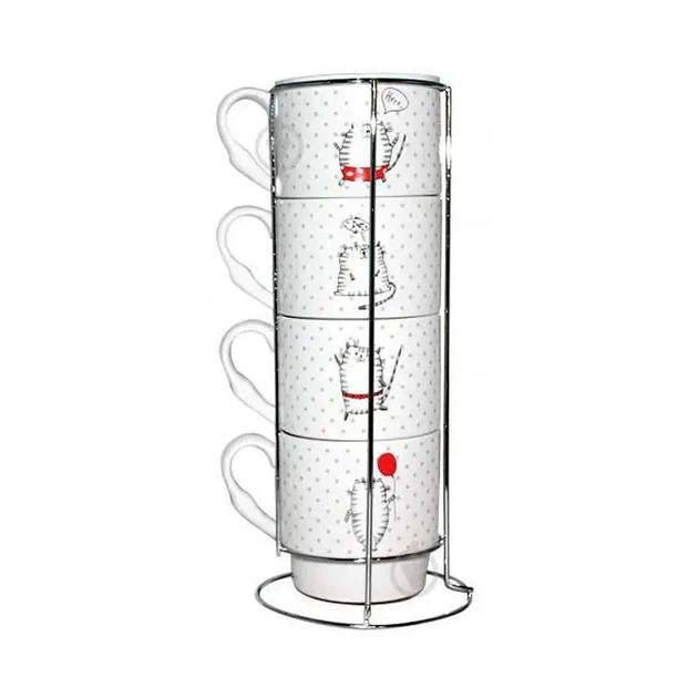 Набір чайний SNT Cat story 021-04-06 на стійці 5 предметів 4х320 мл Білий (987534)