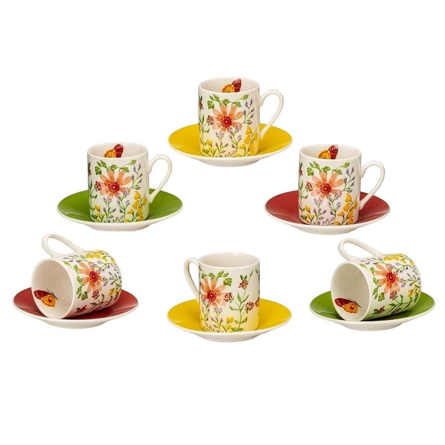 Кавовий порцеляновий набір Метелик Флорал 6 чашок 90мл та 6 блюдець (BD-999-032)