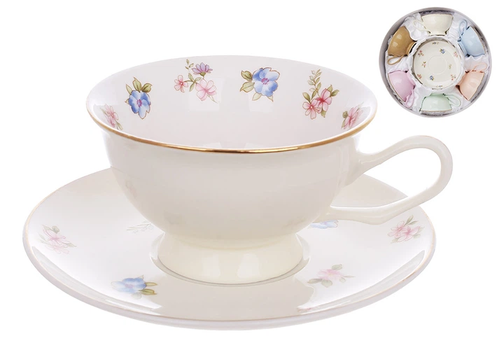 Чайно-кавовий порцеляновий набір Flower Garden 6 чашок 200мл із блюдцями (BD-K053)