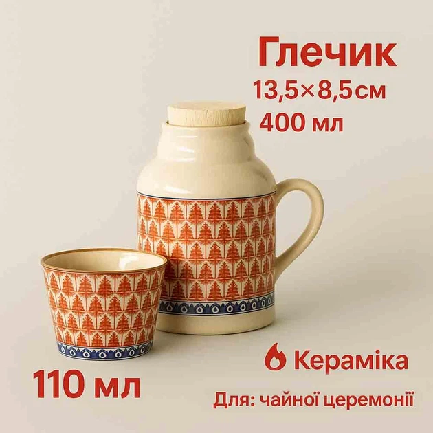 Керамічний чайний набір для гунфу-ча Глечик 400 мл + піала 110 мл для чаю