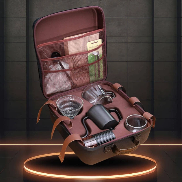 Подарунковий набір для заварювання кави з 9 предметів, дорожній кавовий набір з кейсом