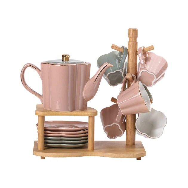 Чайний сервіз на 6 персон з бамбуковою підставкою Кераміка для чаю та кави набір посуду для затишних зустрічей (523577)