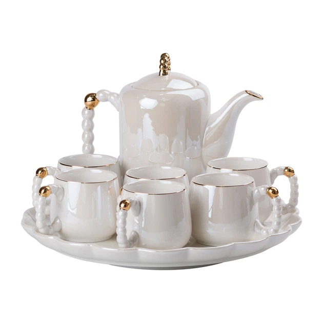 Чайний набір на 6 персон із заварювальним чайником та порцелянаовою підставкою Білий HP-15-7