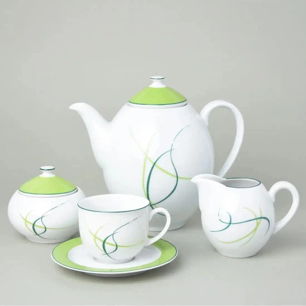 Чайний набір на 6 персон із заварювальним чайником та порцелянаовою підставкою Зелений HP-15-8