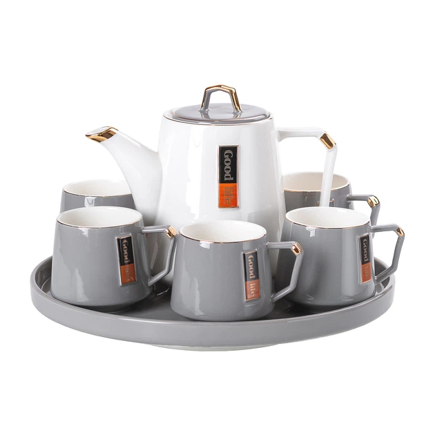 Чайний сервіз Light House "Good life" на 6 персон з фарфоровою підставкою LG-30011 сірий