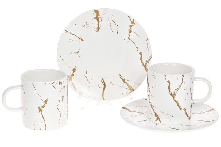 Чайний набір порцеляновий Мармурова Розкіш 2 чашки та блюдця 220 мл білий із золотом 805-703