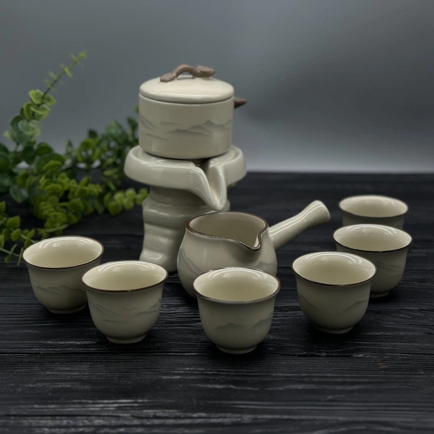Чайний набір для церемонії Гунфу-ча Керамічний напівавтоматичний набір для китайської чайної церемонії Туманні гори