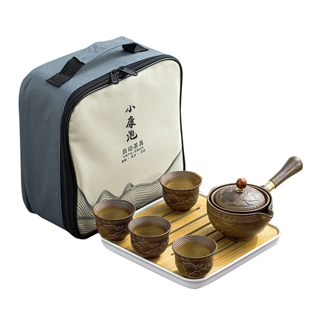 Набір для церемонії чайної Lesko з 6 предметів Brown керамічний дорожній