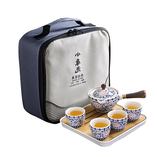 Набір для чайної церемонії Lesko із 6 предметів Dragon Blue керамічний дорожній