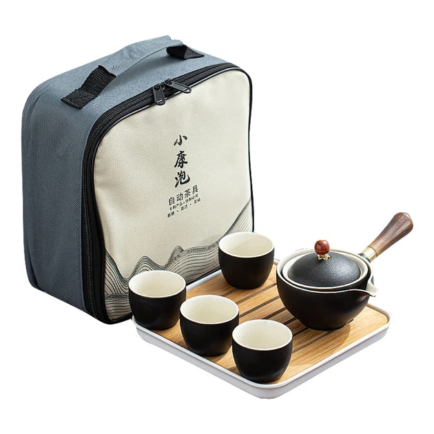 Дорожній набір Lesko black sand із 6 предметів для чайної церемонії керамічний