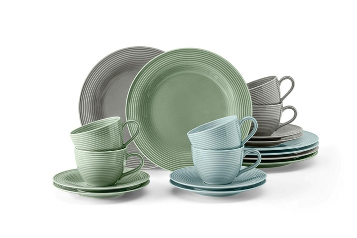 Кавовий сервіз Seltmann Beat з 18 предметів на 6 персон преміум порцеляна 3 кольори блакитний зелений сірий