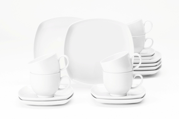 Кавовий сервіз Seltmann Lido квадратний з 18 предметів на 6 персон преміальна порцеляна білий