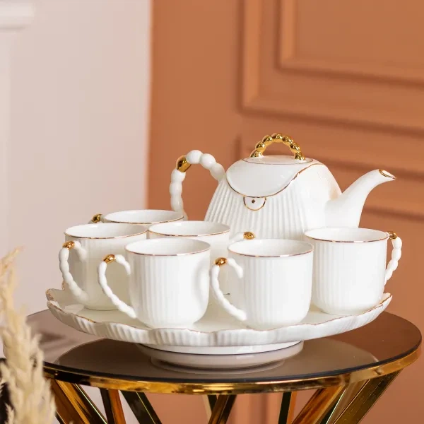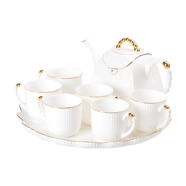 Чайний сервіз порцеляновий Modern білий на 6 персон 8 предметів для чаю кави чашки чайник піднос в наборі