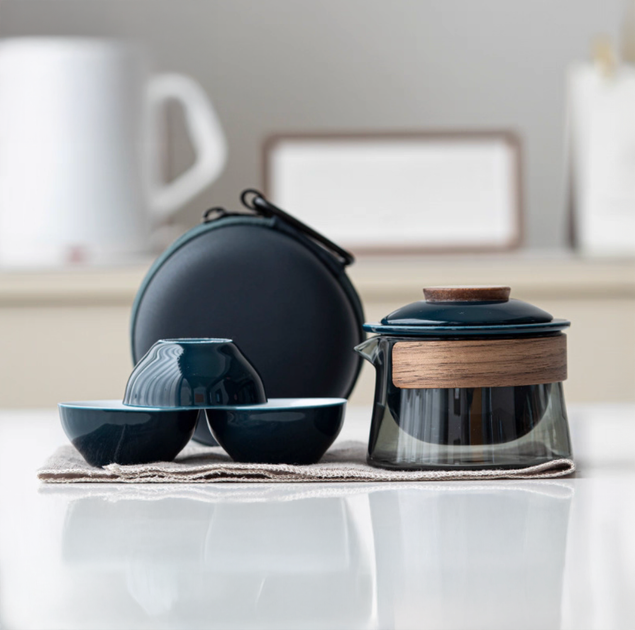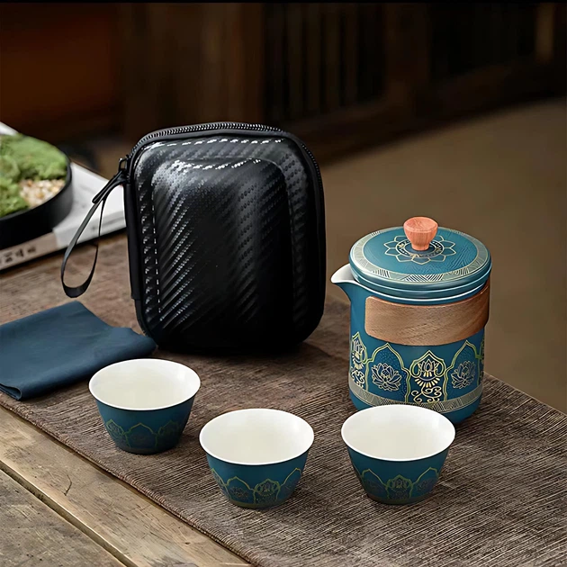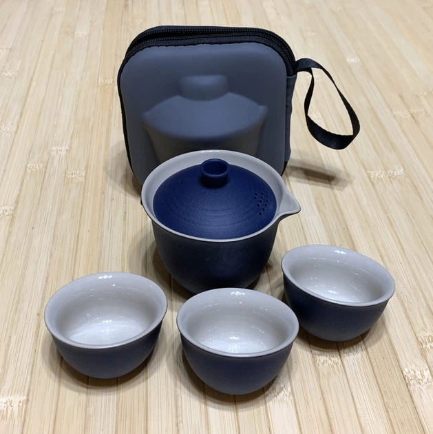 Дорожній чайний набір із чахаєм і піалами - синій, у захисному кейсі