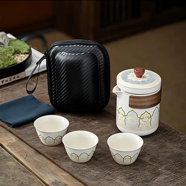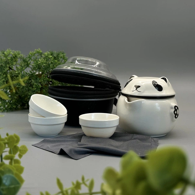 Чайний набір з чохлом, портативний набір для чайної церемонії на 3 персони Панда