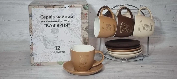 Чайний сервіз SNT Кав'ярня порцеляна на стійці 270 мл 12 предметів Різнобарвний 15200