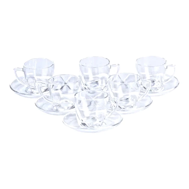 Набір прозорих чашок із блюдцями 6 штук 200 мл для кави та чаю скляні для сервірування (523213)
