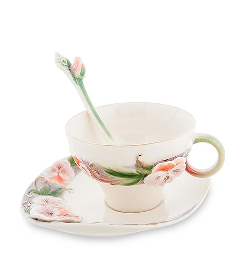 Чайний набір порцеляновий 3 предмети чашка 180 мл. блюдце та ложка Торенія 6001003
