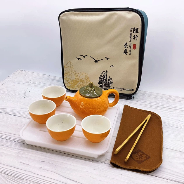 Чайний набір на 4 особиу кейсі для зберігання Яскравий мандарин