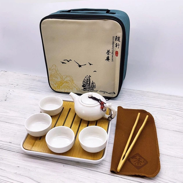 Чайний комплект на 4 особи Нефритова Вода з сумкою для зберігання та чайною банкою