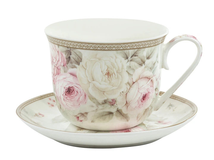 Чайний набір Рожевий англійський букет з чашкою та блюдцем 500 мл