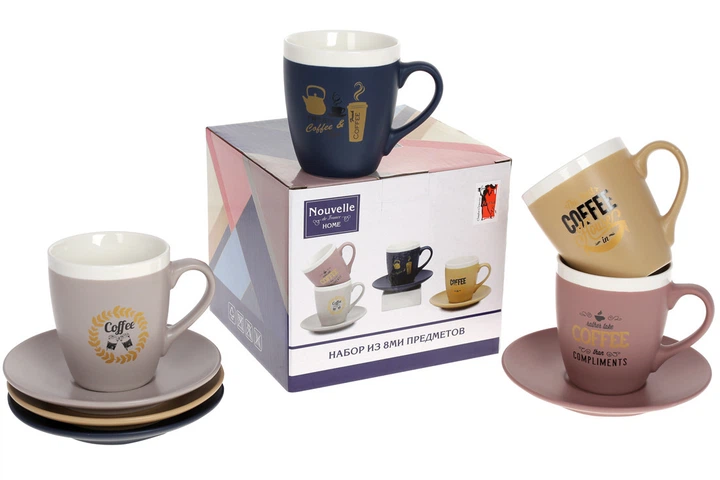 Кавовий набір фарфоровий: 4 чашки 240мл+ 4 блюдця 905-219 21/05