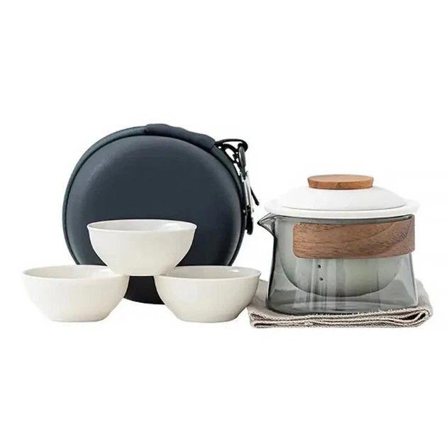 Дорожній чайний набір Lesko з чохлом Білий