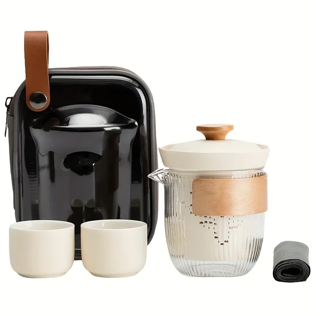 Дорожній керамічний чайний набір, білий сервіз із підставкою для чайної церемонії на 4 особи