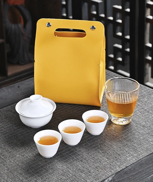 Чайний набір порцеляновий портативний на 3 особи білий
