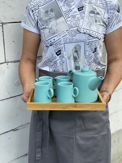 Набір чайний заварник та 4 чашки на підносі Монако Бірюзовий O8030-1213