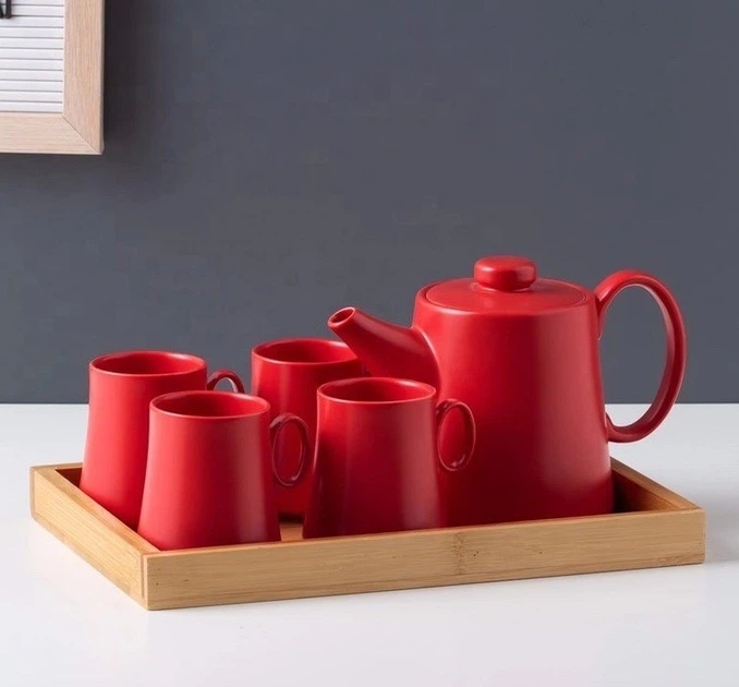 Набір чайний заварник та 4 чашки на підносі Монако червоний O8030-1211