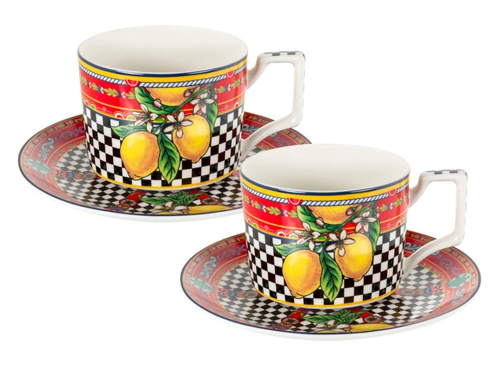 Чайний сервіз 2 чашки та блюдця Sicilian lemon Dolche 250мл
