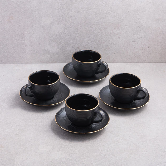 Набір із 4 чашок та блюдець для чаю Los'k Imperium Negro 200 мл (L0630-T8601464)