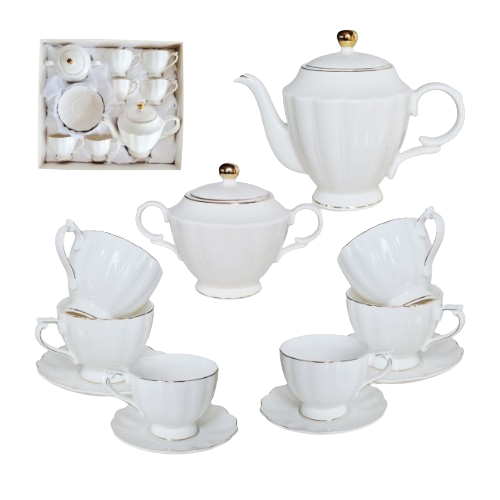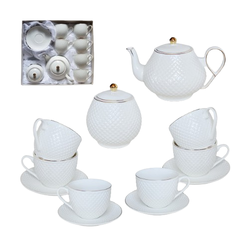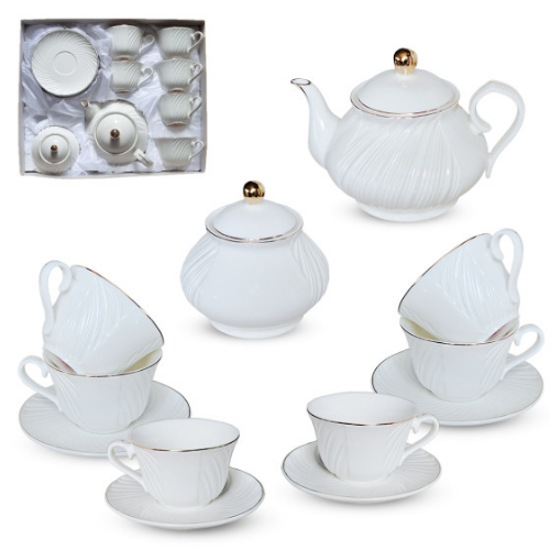 Сервіз чайний Белла 14 предметів (ч.260мл/блюдце d13,5см*6шт + чайник 1000мл + цукорниця 460мл) S&T