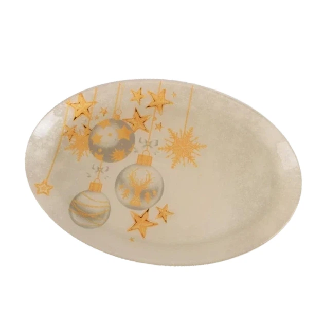 Блюдо скляне овальне 3020 см, термостійке з різдвяним візерунком, для закусок, салатів, десертів, фруктів