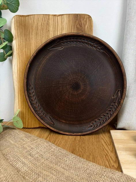 Блюдо для піци 30 см керамічне (глиняне) різьблене Колосок