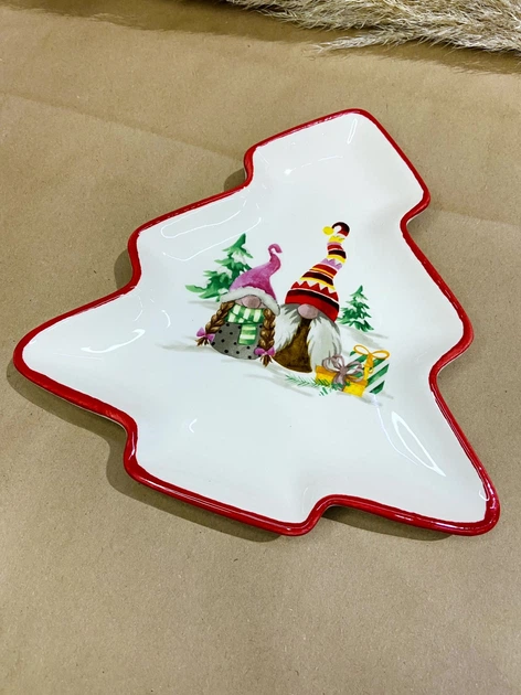 Блюдо Керамічне 22х21см Різдвяні Гноми Ялинка